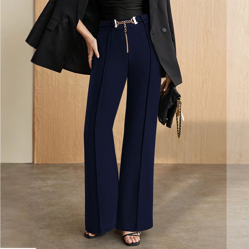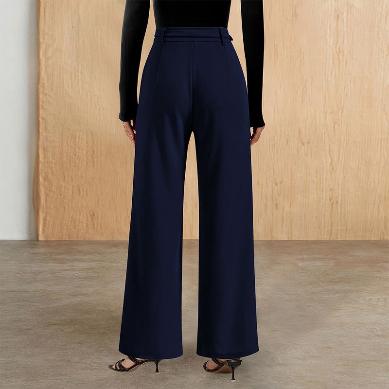 Women's High Waisted Wide Leg Dressy Pants for Work Chain Tassel Decor Formal Business Casual Trousers Navy BLue S