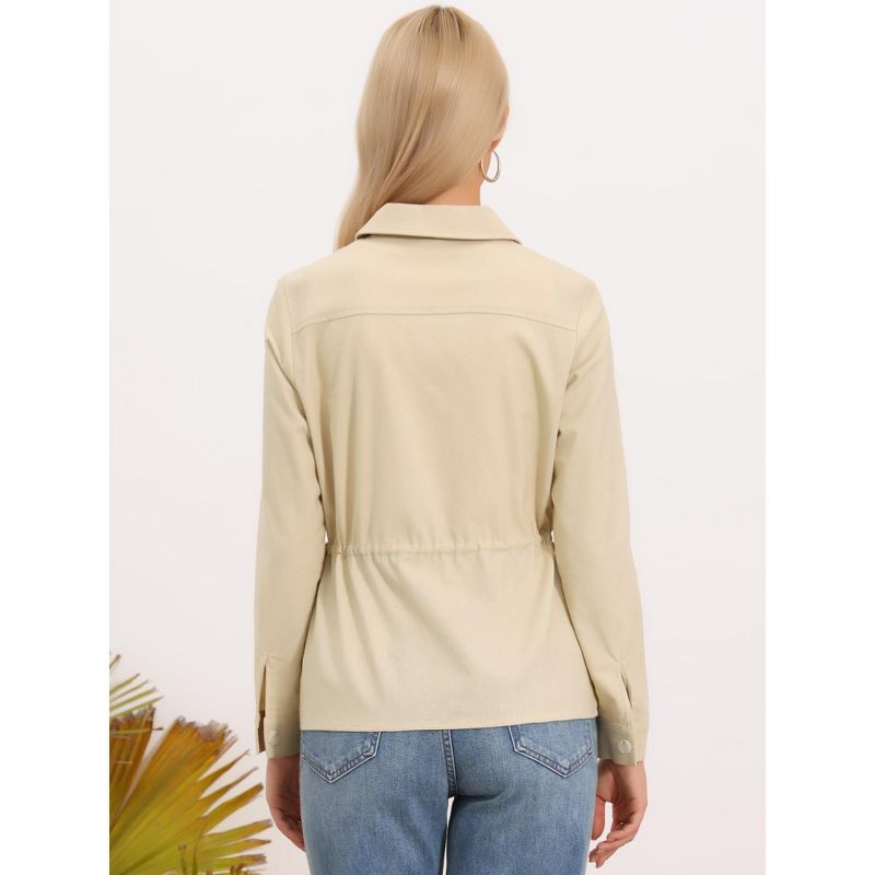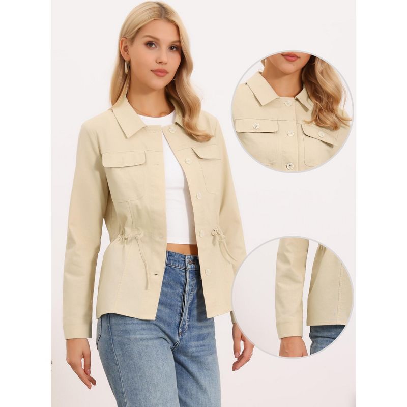 INSPIRE CHIC Women's Button Down Drawstring Waist Lapel Lightweight Spring Linen Utility Jacket Large Khaki