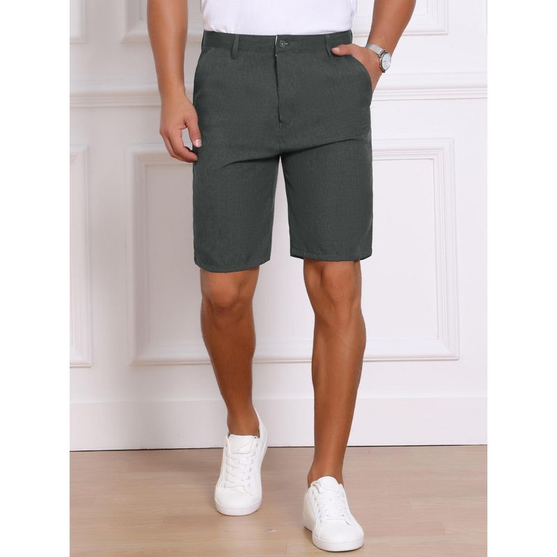 INSPIRE CHIC Men's Linen Texture Above Knee with Pockets Formal Shorts 36 Dark Gray