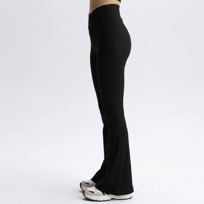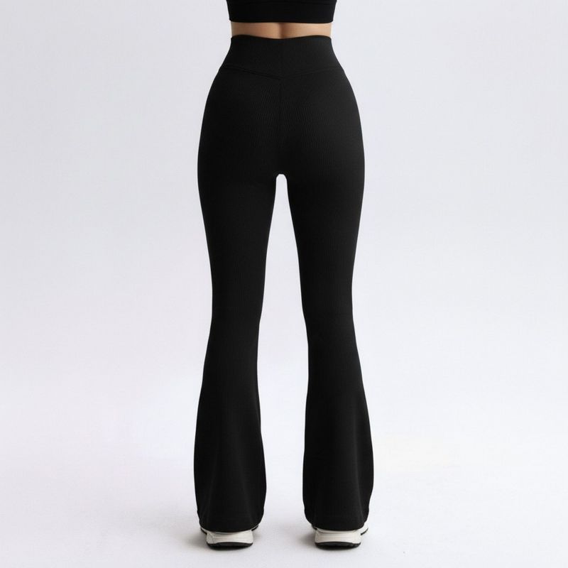 Anna-Kaci Active Women's High Waist Flare Leggings with V-Shaped Waistband and Stretch Rib Knit Fabric - X Large, Black