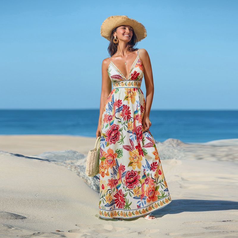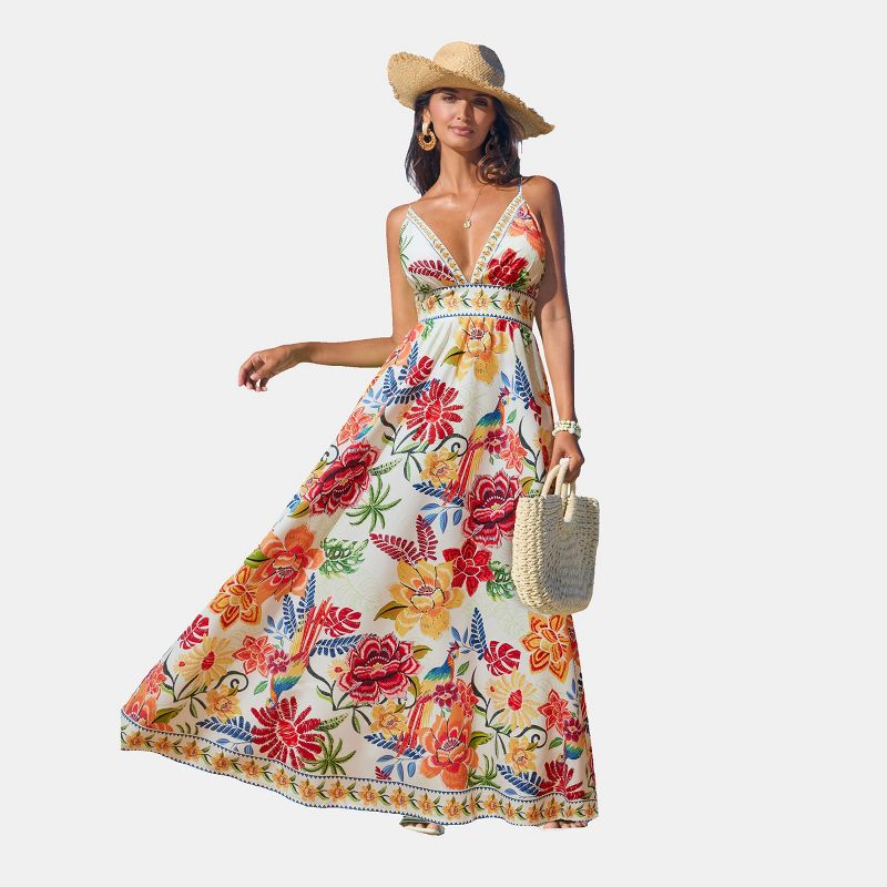 Women's Vibrant Floral Print Maxi Dress for Beach Getaways -Cupshe-L-Multicolored