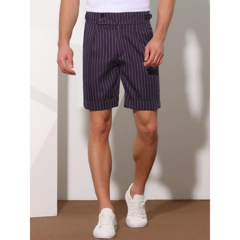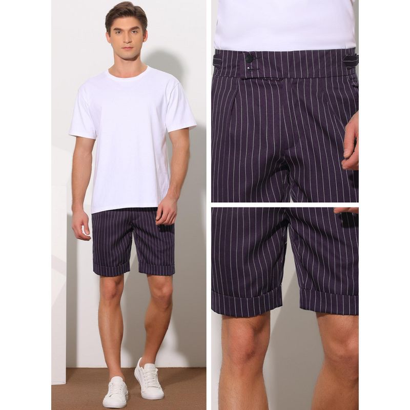 Lars Amadeus Men's Summer Pleated Front Stripes Business Dress Shorts Purple 32