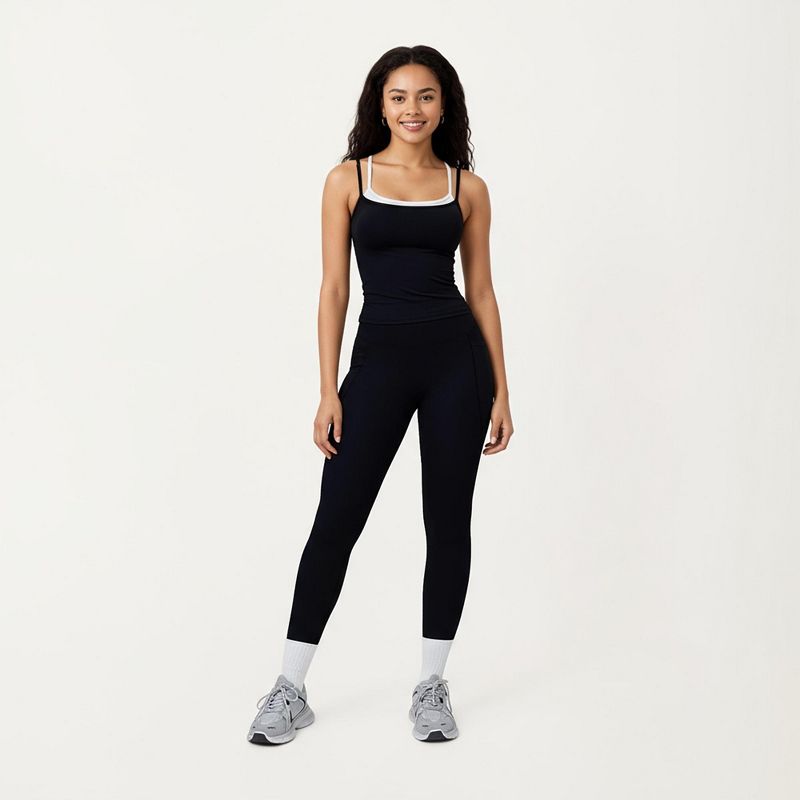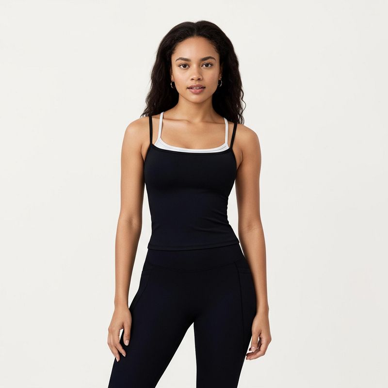 Anna-Kaci Active Women's Double Strap Fitted Active Tank Top with Built-In Shelf Bra - Small, Black