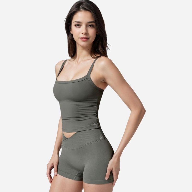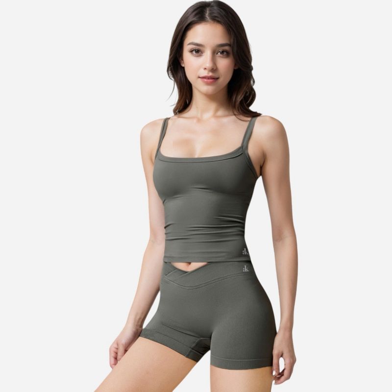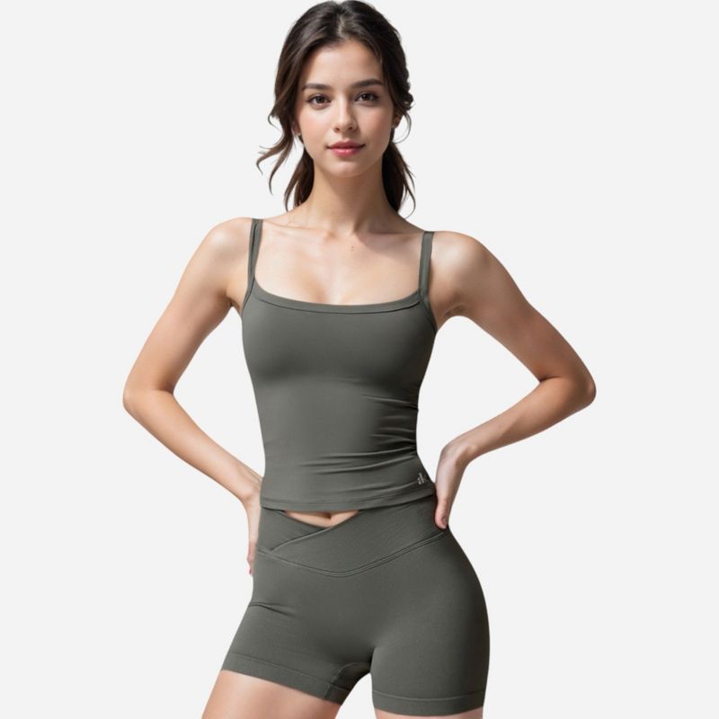 Anna-Kaci Active Women's Square Neck Tank Top with Spaghetti Straps - Small, Gray