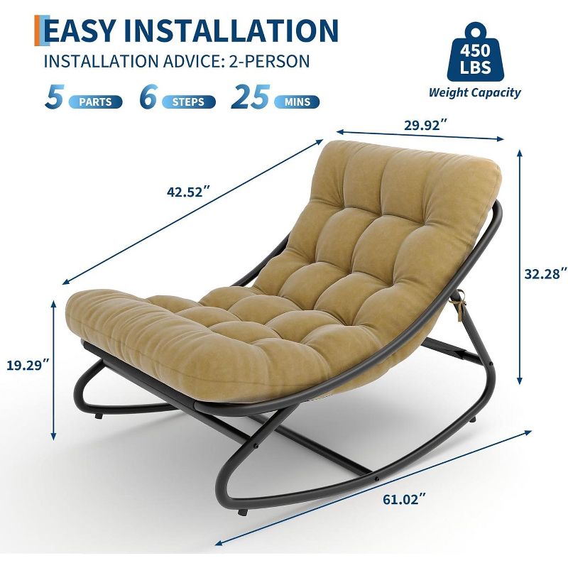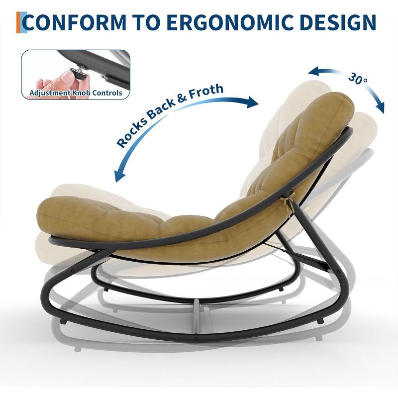 COZONY Oversized Papasan Rocking Chair, Thick Cushion 450 LBS Support Indoor Outdoor Rocking Egg Chair for Bedroom Living Room Patio Porch Garden