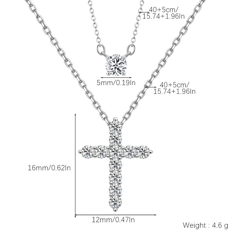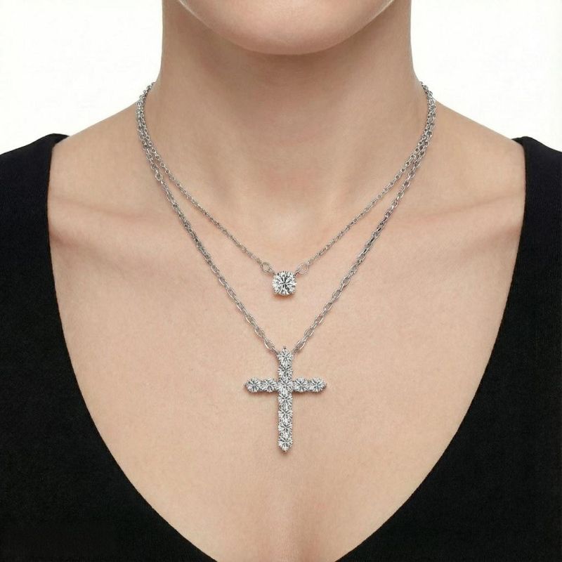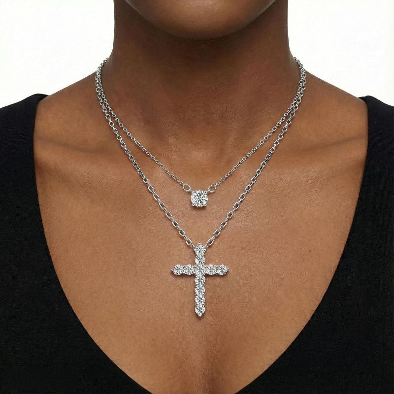 Women’s Modern Silver Layered Cross Necklace Set - Cubic Zirconia Pendants, Dainty O-Link Chain Everyday Jewelry