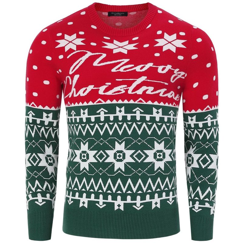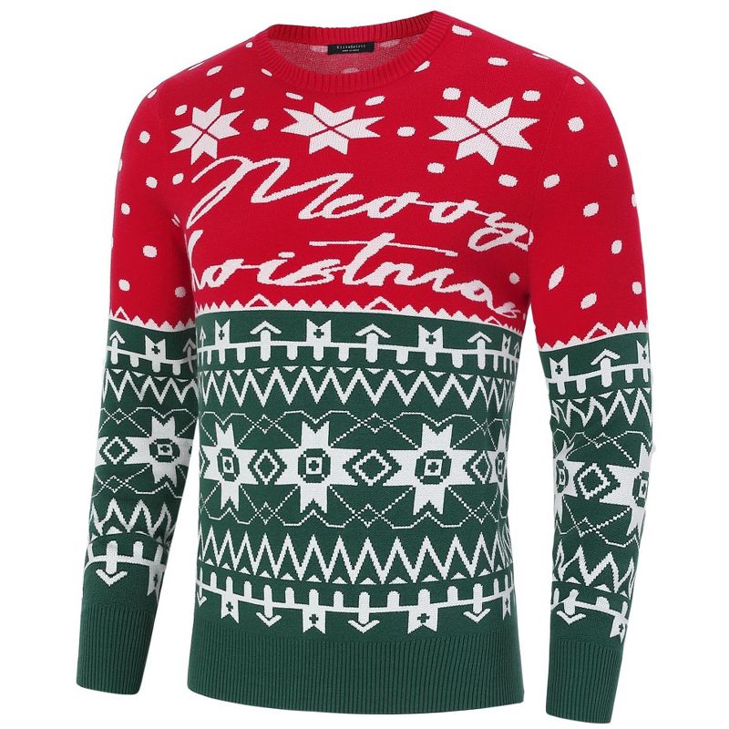 BLUEMING Mens Christmas Sweater Pullover Ugly Festive Crew Neck Sweater with Snowflakes Pattern Holiday Sweater,Red Green - S