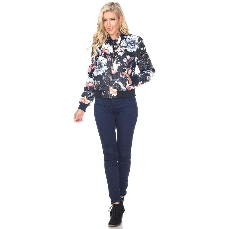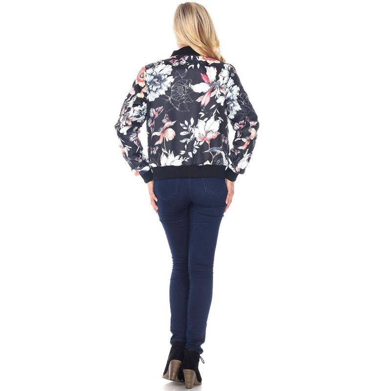 Women's Floral Bomber Jacket Black Large - White Mark