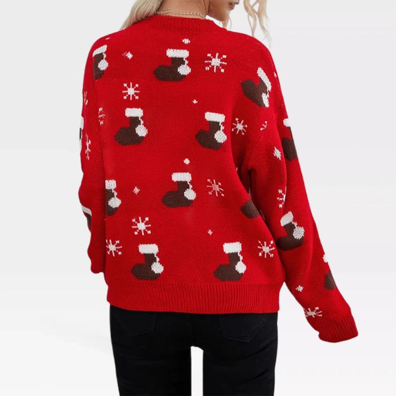 Womens Christmas Sweaters 2025 Festive Sweaters Christmas Stockings Pattern Crew Neck Ribbed Cuffed Pullovers Holiday Swetaers