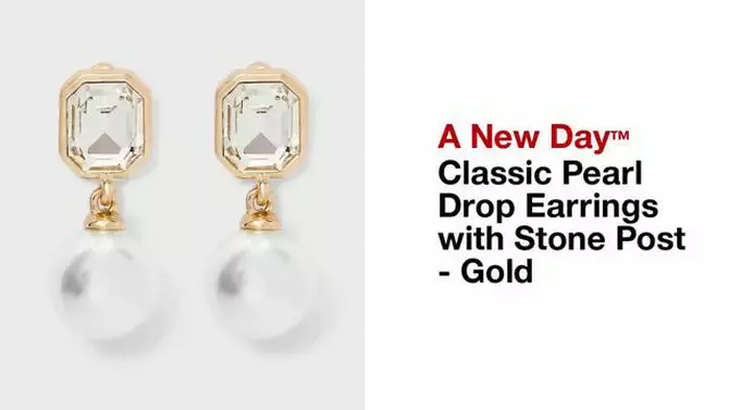 Classic Pearl Drop Earrings with Stone Post - A New Day™ Gold