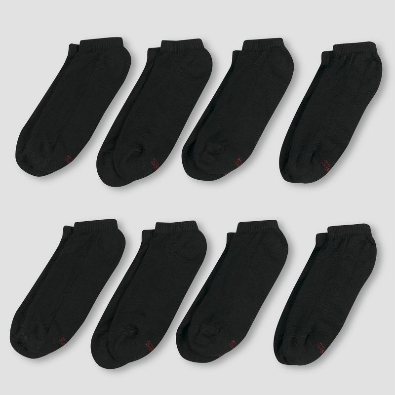 Men's Hanes Low Cut Socks with FreshIQ 8pk - Black: Moisture Wicking, Reinforced Heel & Toe