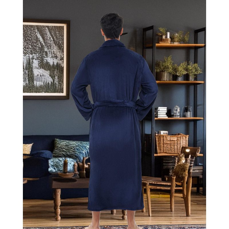 ADR Long Mens Robe Full Length Big and Tall Bathrobe for Men, Mens Bath Robes Navy Blue Large