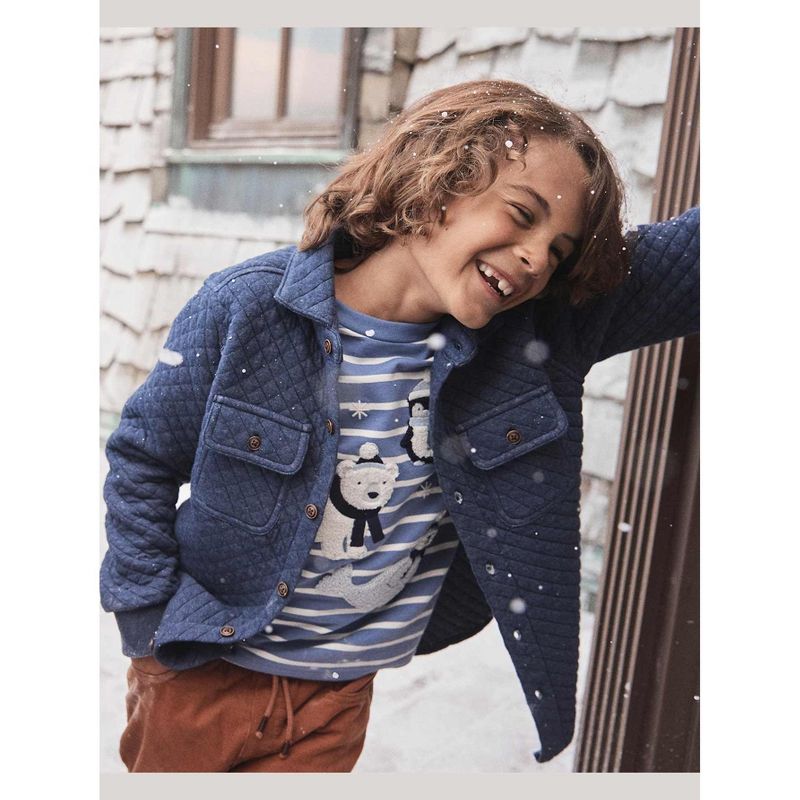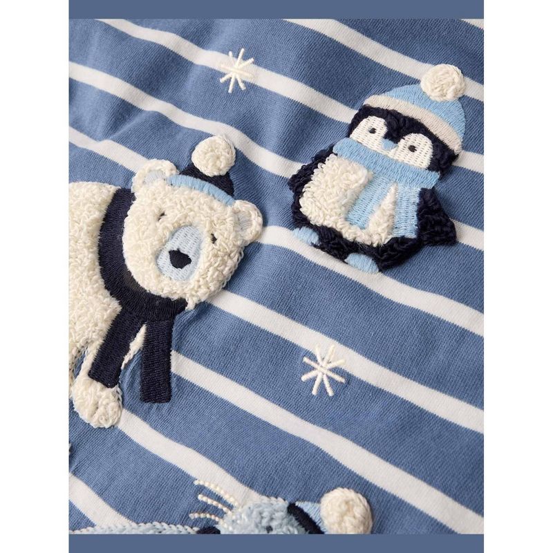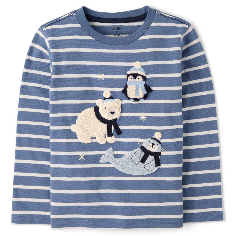 Gymboree Boys Long Sleeve Striped Embroidered Polar Animals Top - First Frost Blue 8