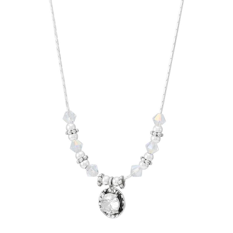 Silpada 'Snow Queen' Sterling Silver White Cubic Zirconia and Crystal Pendant Necklace, 16" + 2"