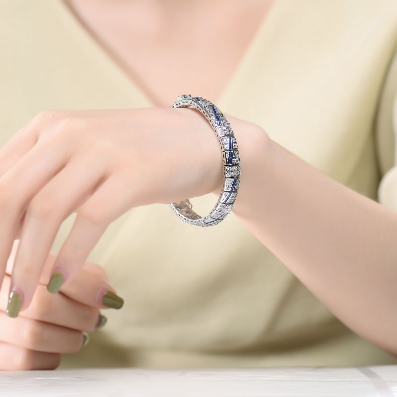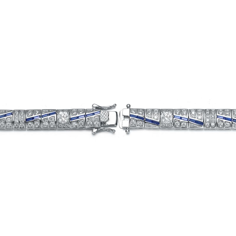 Guili Sterling Silver Clear and Blue Cubic Zirconia Link Bracelet, Sparkling and Versatile Design for Effortless Everyday Elegance