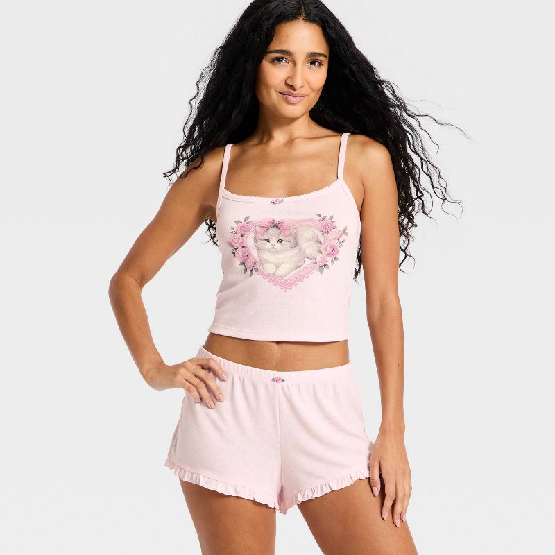 Women's Pointelle Tank Top and Shorts Pajama Set - Wild Fable™ Pink XL