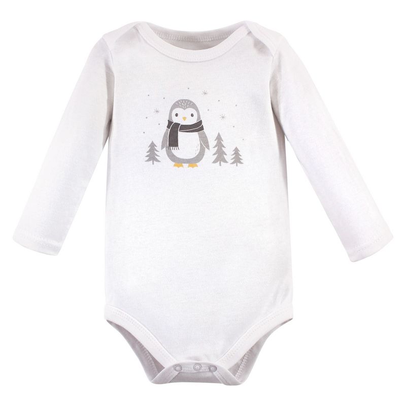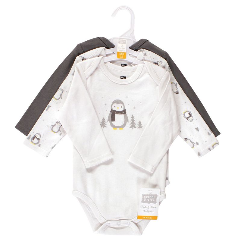 Hudson Baby Cotton Long-Sleeve Bodysuits, Gray Penguin, 3-6 Months