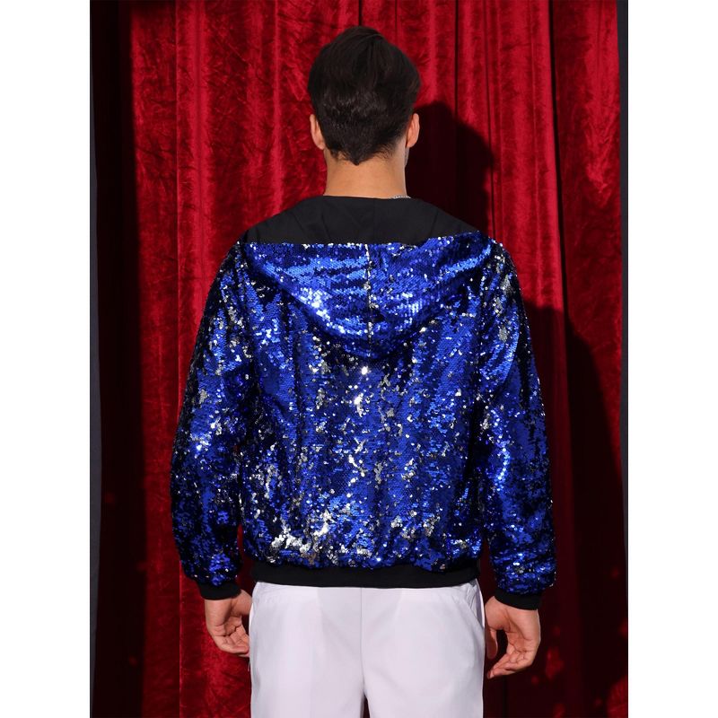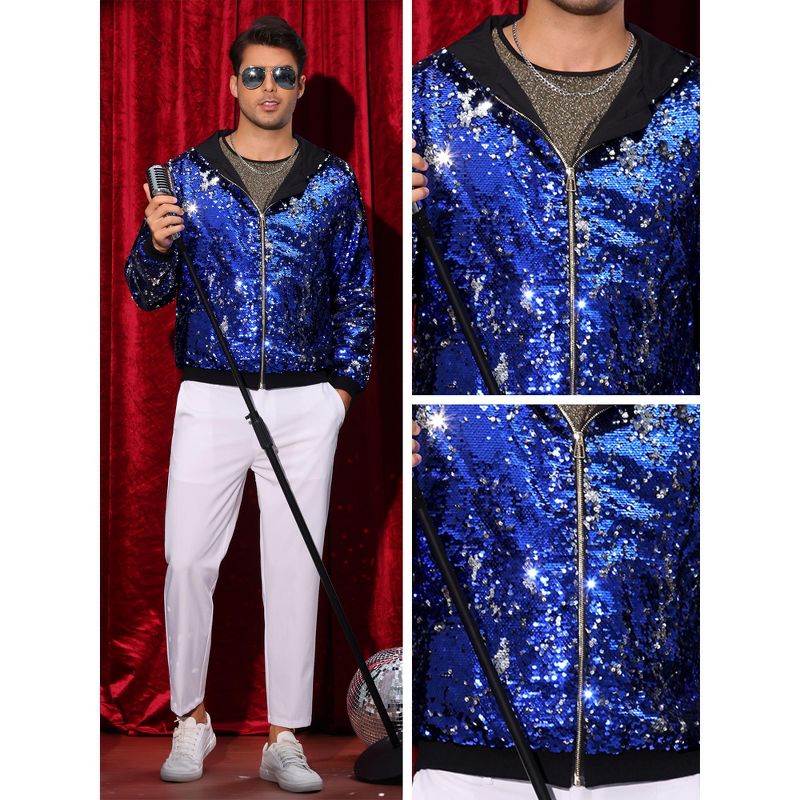 Lars Amadeus Men's Long Sleeves Zip Up Sparkle Metallic Sequins Hoodie Jackets Medium Blue