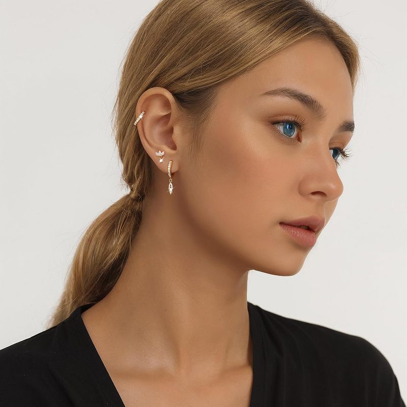 Multi-Piercing Earring Set, 14K Gold Plated Huggie Hoop Drop & Stud, Curated Dainty Jewelry for Women Gold One Size