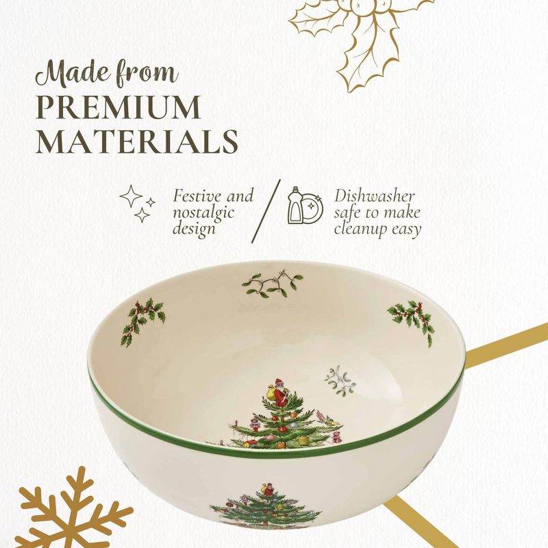 Portmeirion Spode Christmas Tree Serving Bowl - 9-Inch Serving Bowl for serving Pasta, Salad, Fruit, Side Dishes, Earthenware - Dishwasher Safe