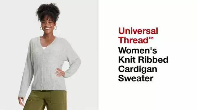 Women's V-Neck Knit Ribbed Cardigan Sweater - Universal Thread™ Pink M
