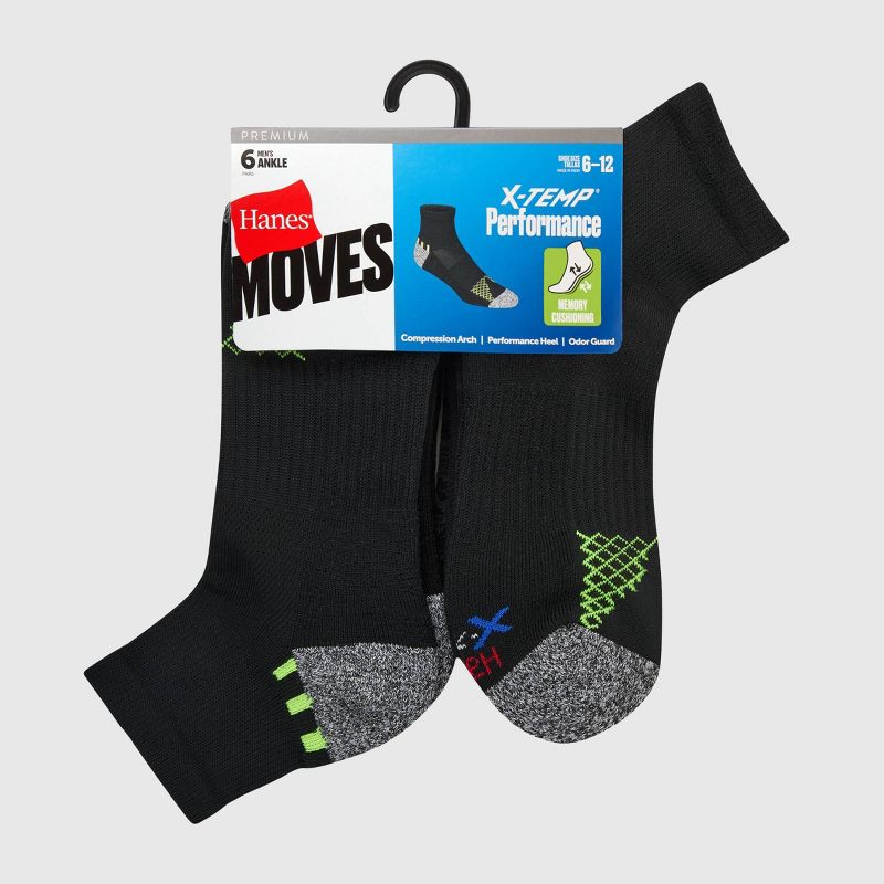 Hanes Moves Premium Men's Performance Ankle Socks 6pk - Black 6-12: Breathable, Moisture Wicking, Cushioned