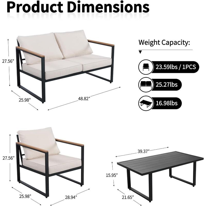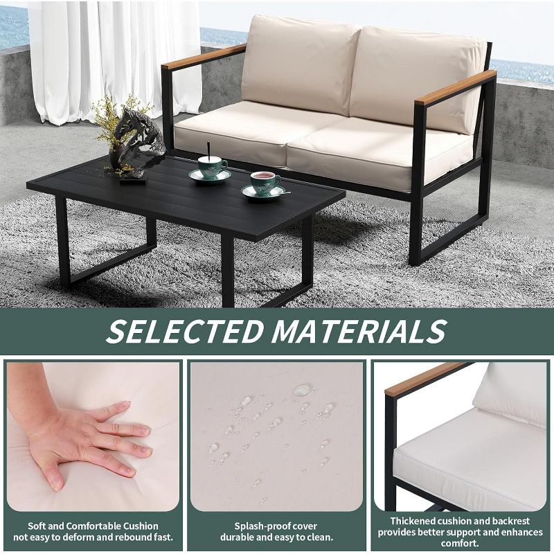 Coucheta Patio Furniture Set 4-Piece, Outdoor Metal Conversation Set with Thick Washable Cushions, Loveseat, 2 Chairs & Coffee Table for Balcony