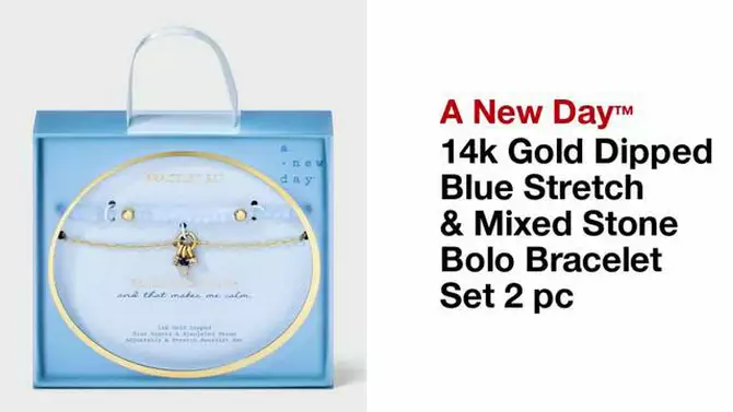 14k Gold Dipped Blue Stretch & Mixed Stone Bolo Bracelet Set 2 pc-A New Day™