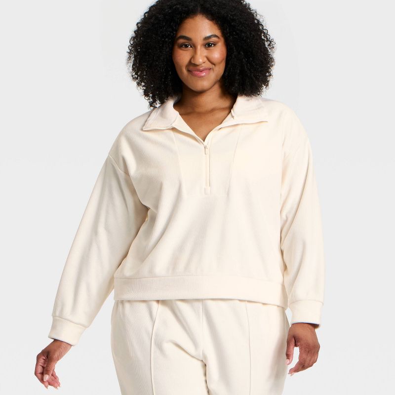 Women's Velour Ribbed 1/2 Zip Sweatshirt - All In Motion™ Cream 3X