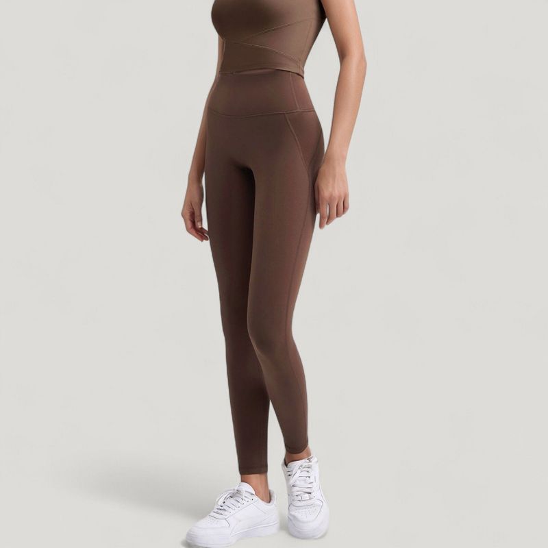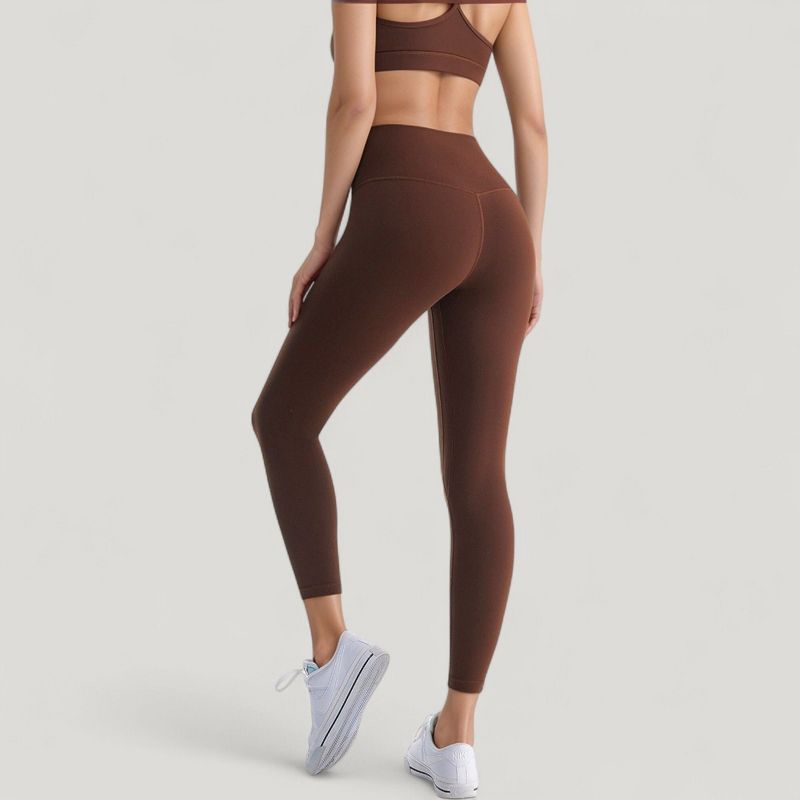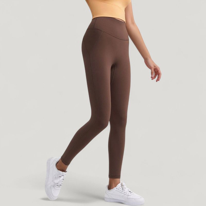Anna-Kaci Active Women's High Waist Full Length Active Leggings with Wide Waistband and Seamless Design - X Large, Brown