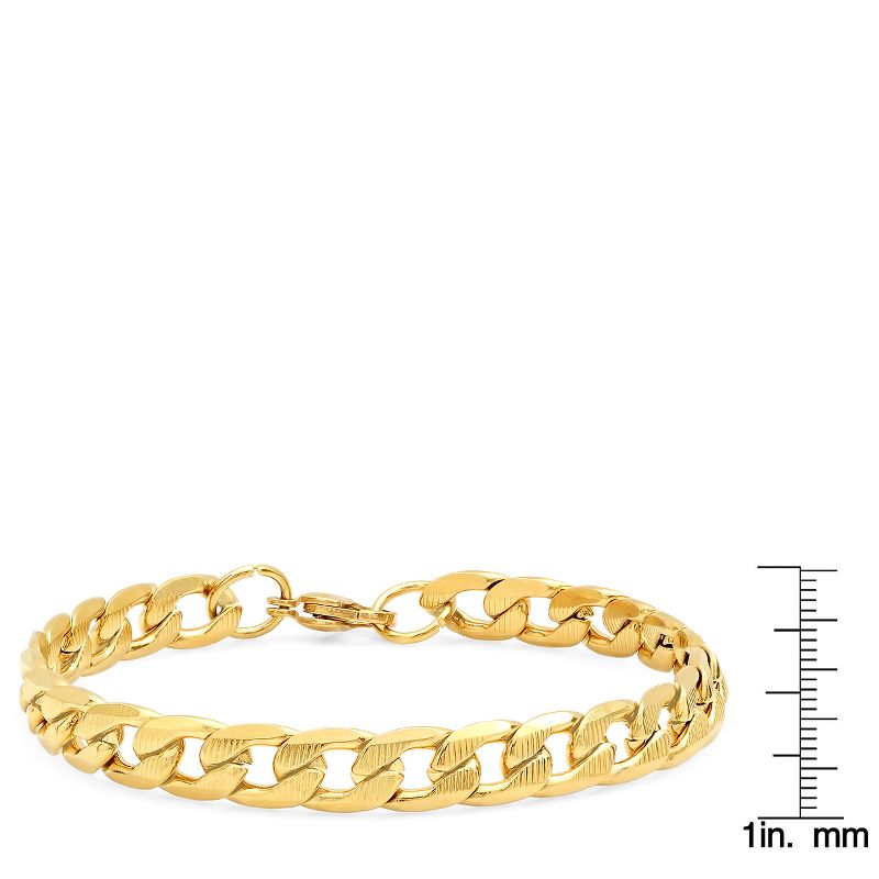 Steeltime Men's 18k gold plated stainless steel accented Cuban link chain bracelet. Color Options: Silver, Gold