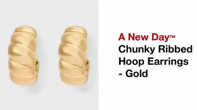 Chunky Ribbed Hoop Earrings - A New Day™ Gold