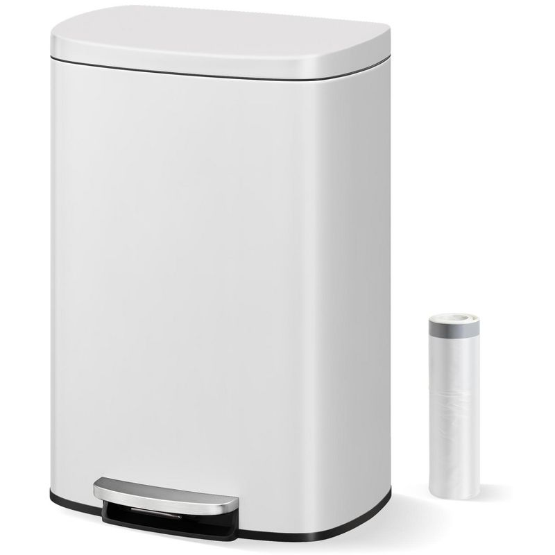 13 Gallon(50 Liter) Stainless Steel Kitchen Trash Can with Soft Close Lid, Step-on Rustproof Garbage Can for Kitchen, Rear Handle, White