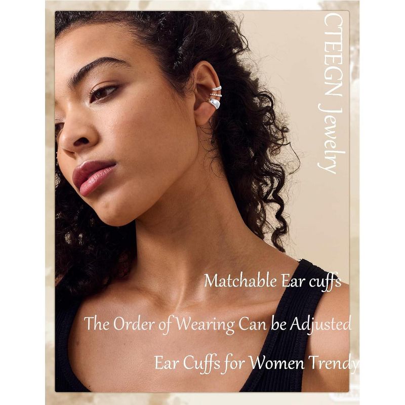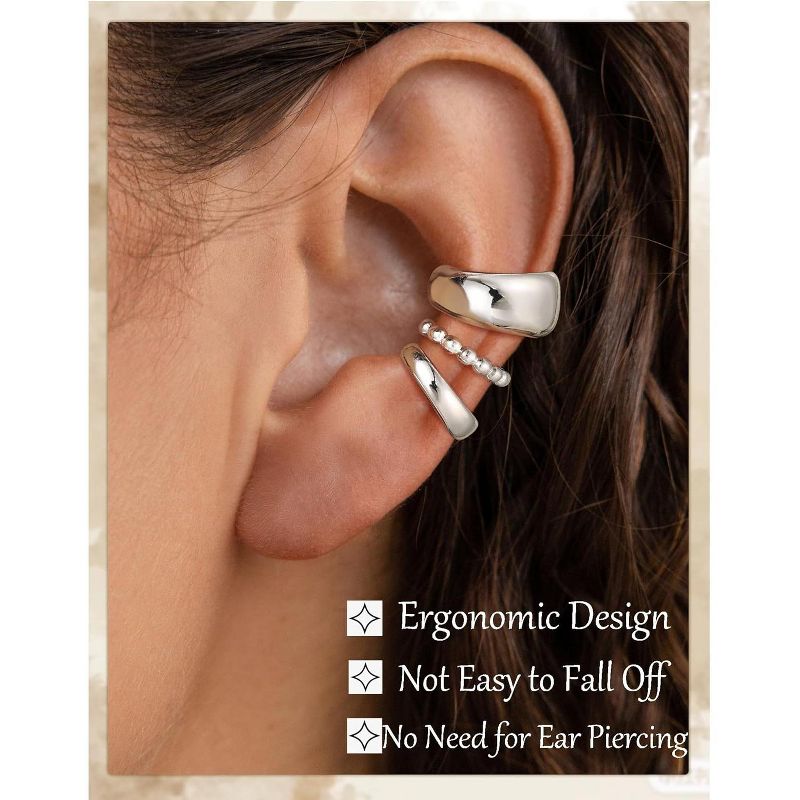 14K gold-plated ear clip set, exquisite clip-on ear cuffs, fashionable, fade-resistant, hypoallergenic jewelry gift. silver style 4 1*0.4