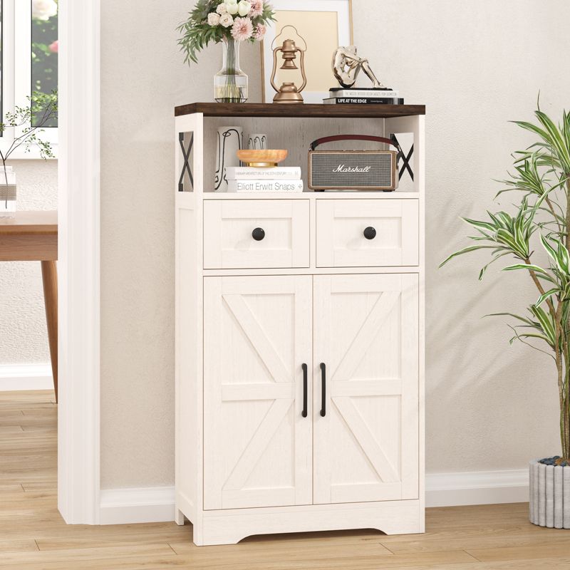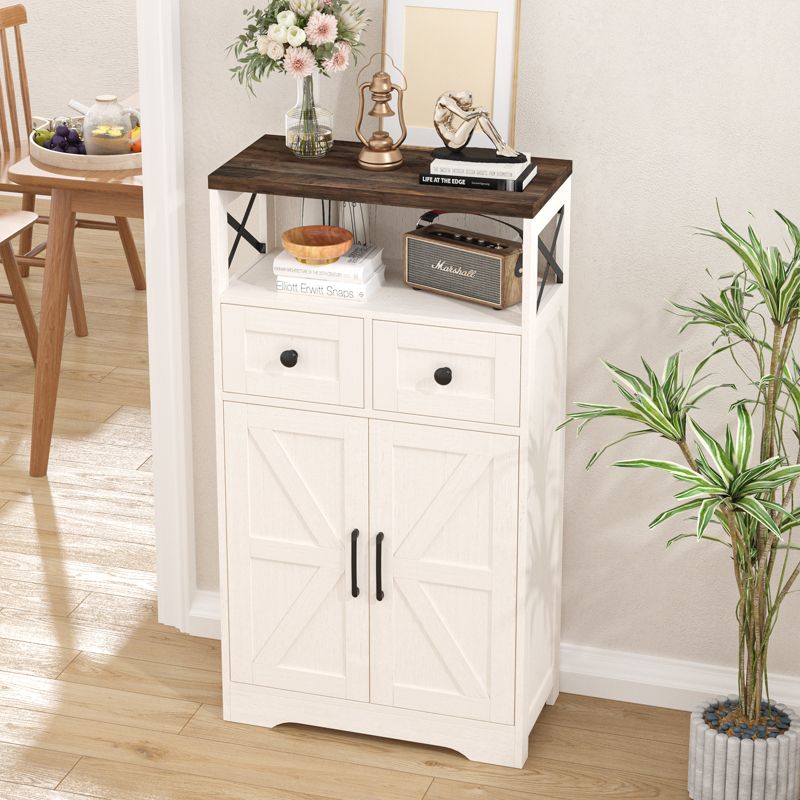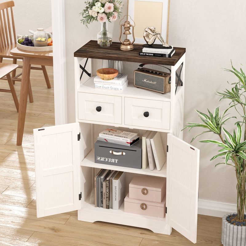 Farmhouse Storage Cabinet with Drawers and Adjustable Shelves, Freestanding Kitchen Pantry Storage Cabinet,White