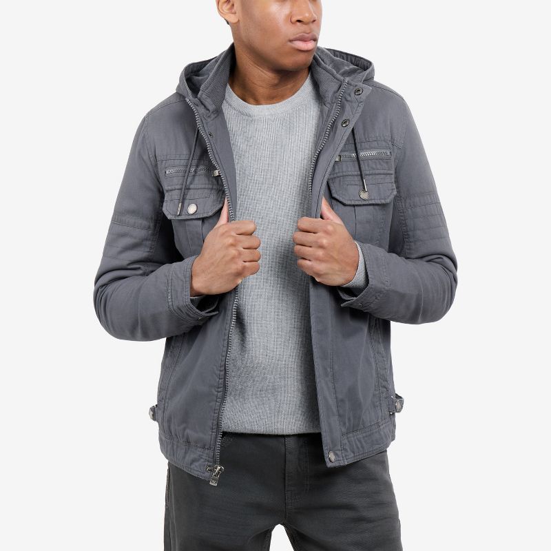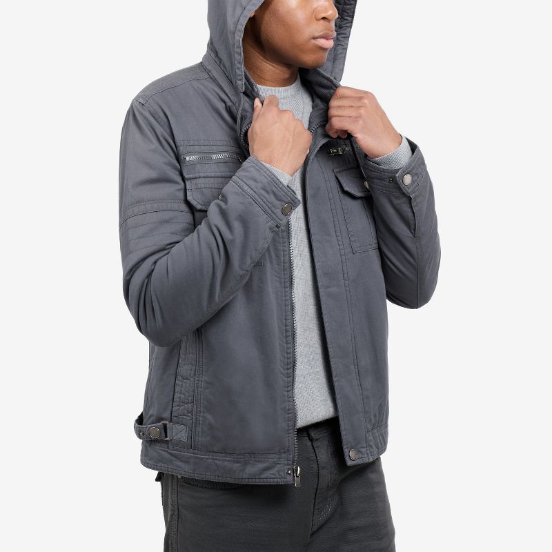 X RAY Men's Faux Shearling Lined Hooded Cargo Jacket in Grey Size XL