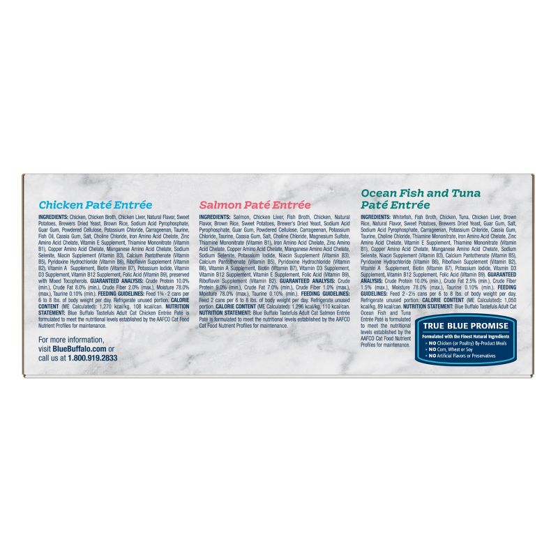 Blue Buffalo Tastefuls Natural Pate Wet Cat Food Variety Pack with Salmon, Chicken, Ocean Fish & Tuna Entrées - 3oz/12ct
