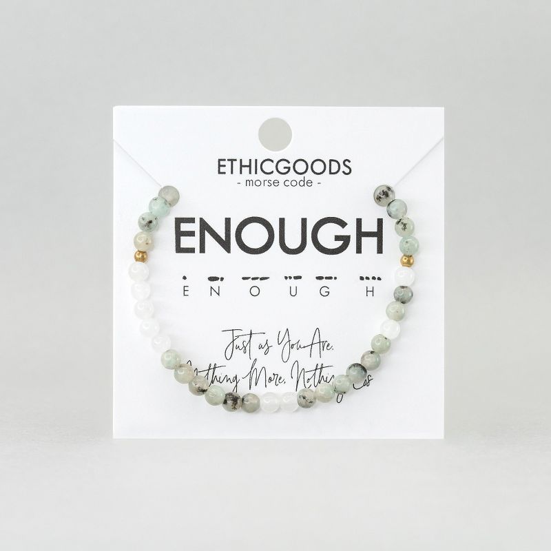 ETHIC GOODS Women's 4mm Morse Code Bracelet [ENOUGH] - Cloudy Glass & Jasper