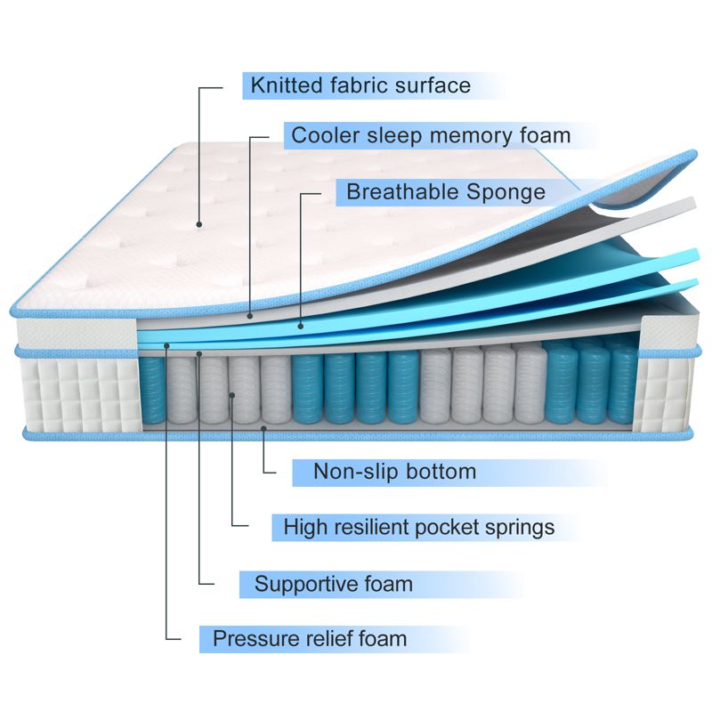 Wuleitex 12” Full Black High Support Pocketed Coil, 7 Layers, 3D Soft Comfort Foam Surface