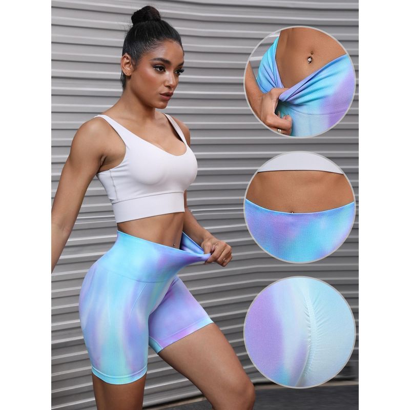 INSPIRE CHIC Women's High Waist Tie Dye Tummy Control Workout Running Biker Thigh Slimmer Blue Purple Large