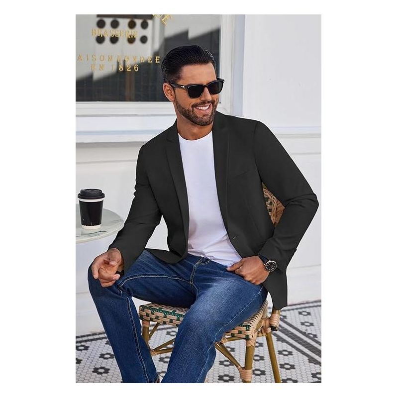 COOFANDY Men's Blazer Casual Suit Jacket Slim Fit One Button Sport Coats Lightweight Sports Jacket Black M