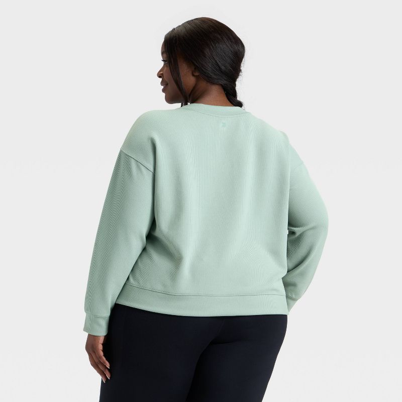 Women's Airy Sleek Ribbed Crewneck Sweatshirt - All In Motion™ Sage Green 4X