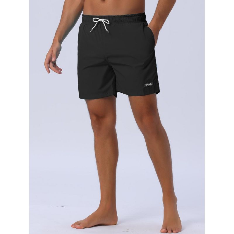 INSPIRE CHIC Men's Summer Drawstring Elastic Waist Mesh Lining Solid Board Shorts Black 36