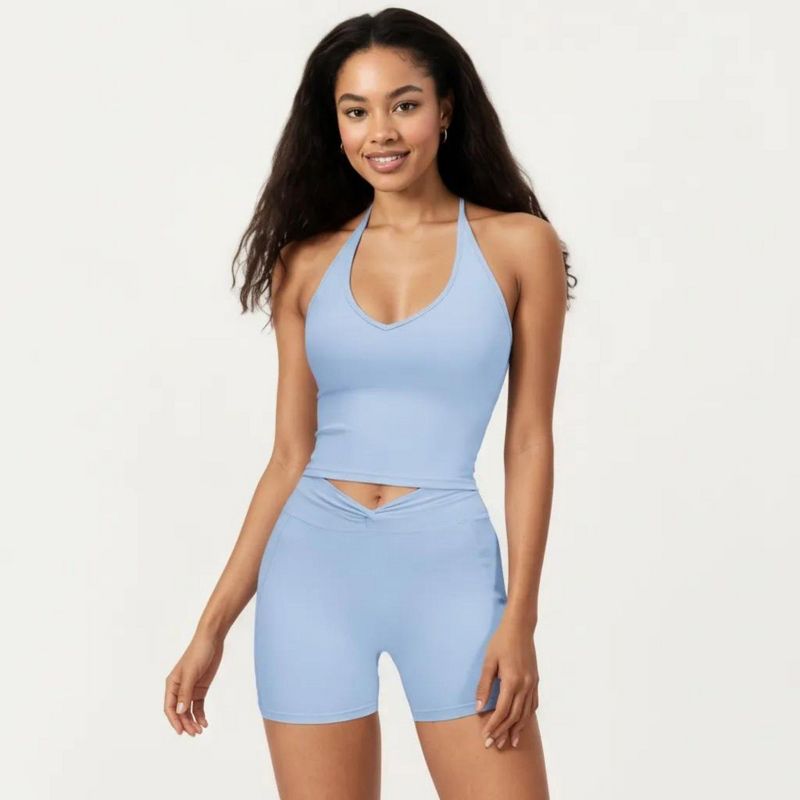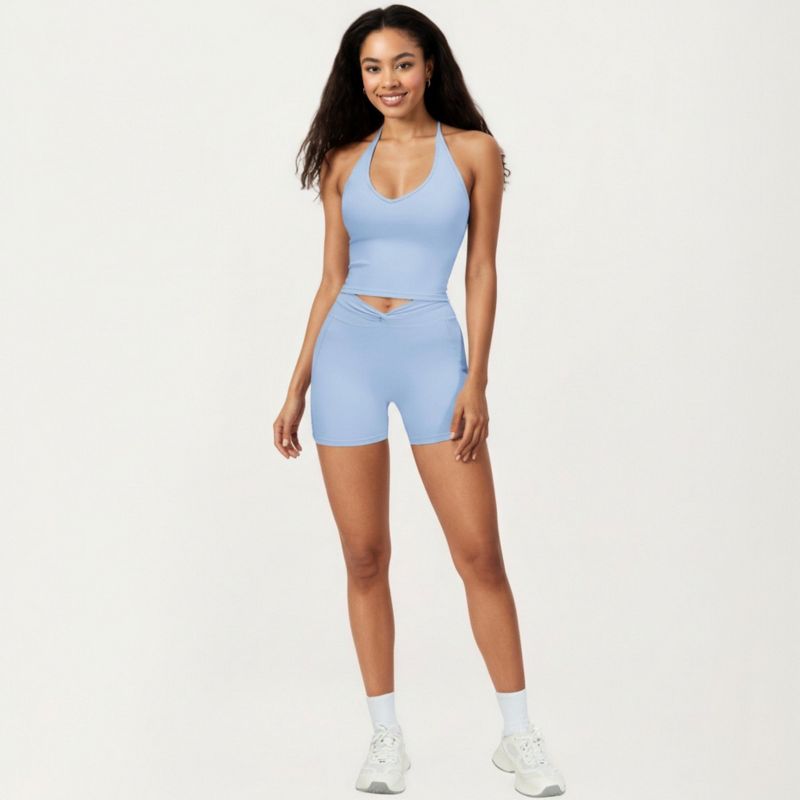 Anna-Kaci Active Women's Halter Neck Fitted Active Top with V Neckline and Smooth Stretch Support - X Large, Blue