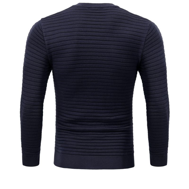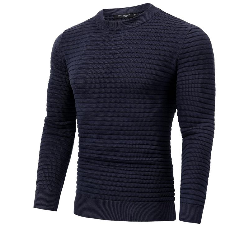 Crew Neck Sweater for Mens Knitted Pullover Sweaters with Solid Stripe Navy Blue XXL