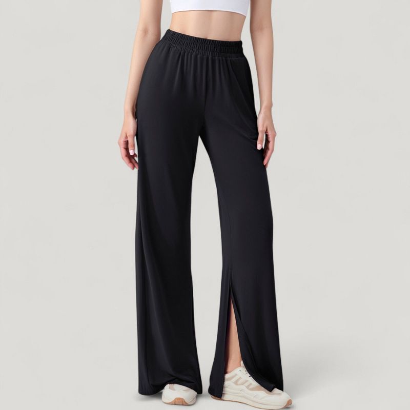 Anna-Kaci Active Women's Wide Leg Lounge Pants with Elastic Waistband and Side Slit Hem Detail - Large, Black