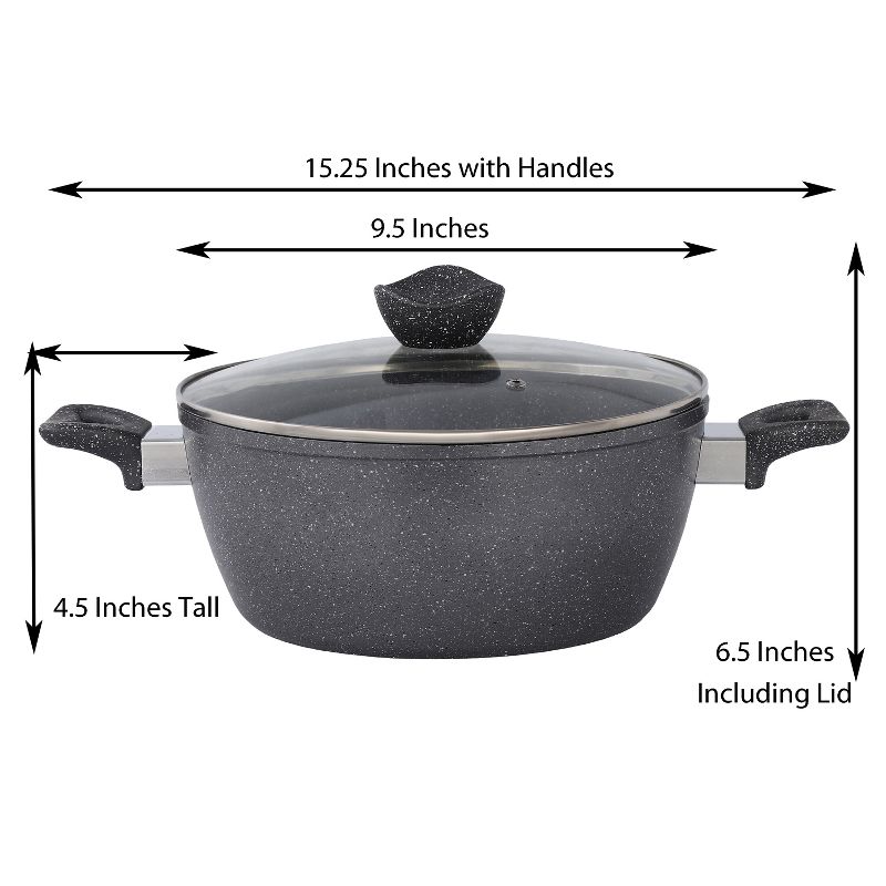 Lorren Home Trends Casserole Pot with Glass Lid, Gray Speckled, PFOA-Free, Dishwasher Safe, 4 Qt, Multi-Surface Compatible