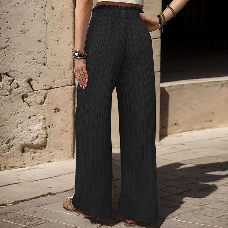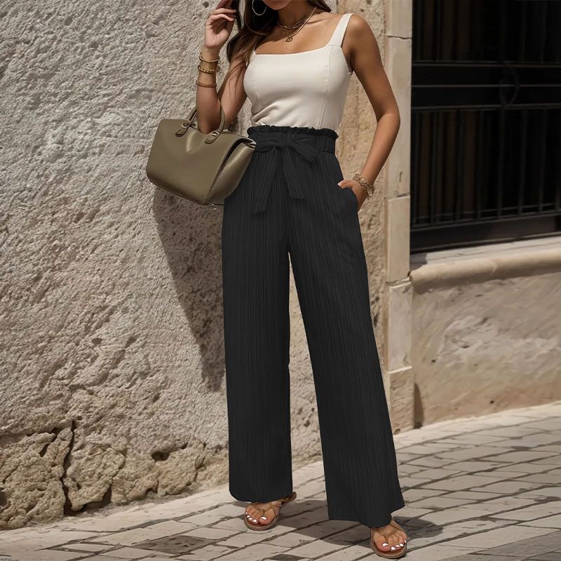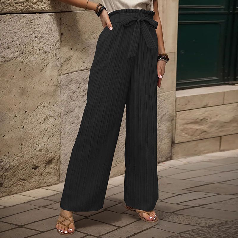 Clearlove Womens High Waist Palazzo Pants Wide Leg Trousers Bow Tie Knot Casual Work Daily Wear with Pockets, Black - S