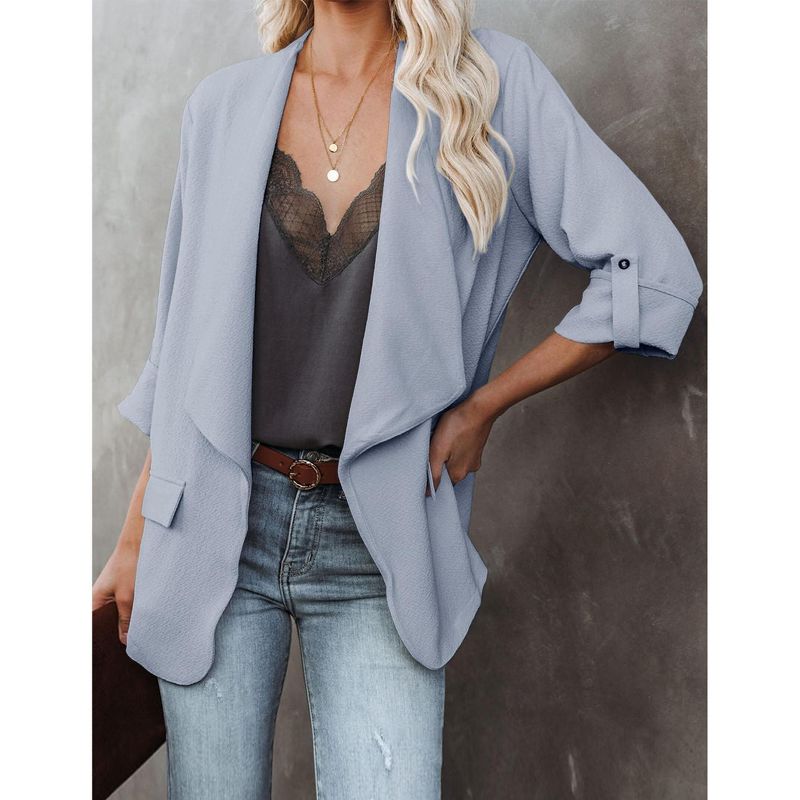 Clearlove Womens Blazer Jackets Roll Up Long Sleeve Open Front Loose Business Casual Coats with Pockets, Haze Blue - XL