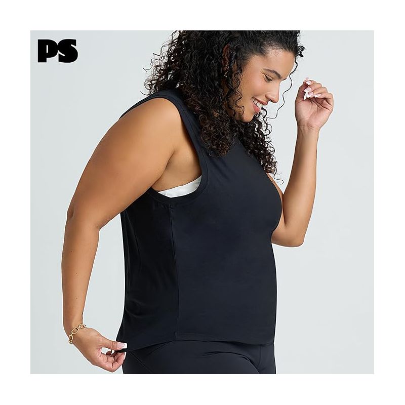 POPSUGAR PS Women's Workout Tops - Sleeveless Loose Fit Athletic Muscle Workout Tank Top for Sports Gym Exercise Yoga for Women Black Night Small